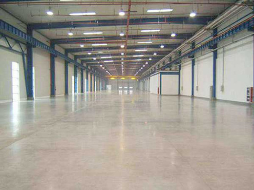 6、最后再做地面打磨拋光,等待地坪表面干燥之后,在使用噴霧器加混凝土液態硬化劑噴灑在地面上,使地面保持濕潤20分鐘以上,使用地面摩煙機帶樹脂磨片來進行地面打磨,然后用吸塵器或者是刮板等材料,將地面上多余的材料去除。